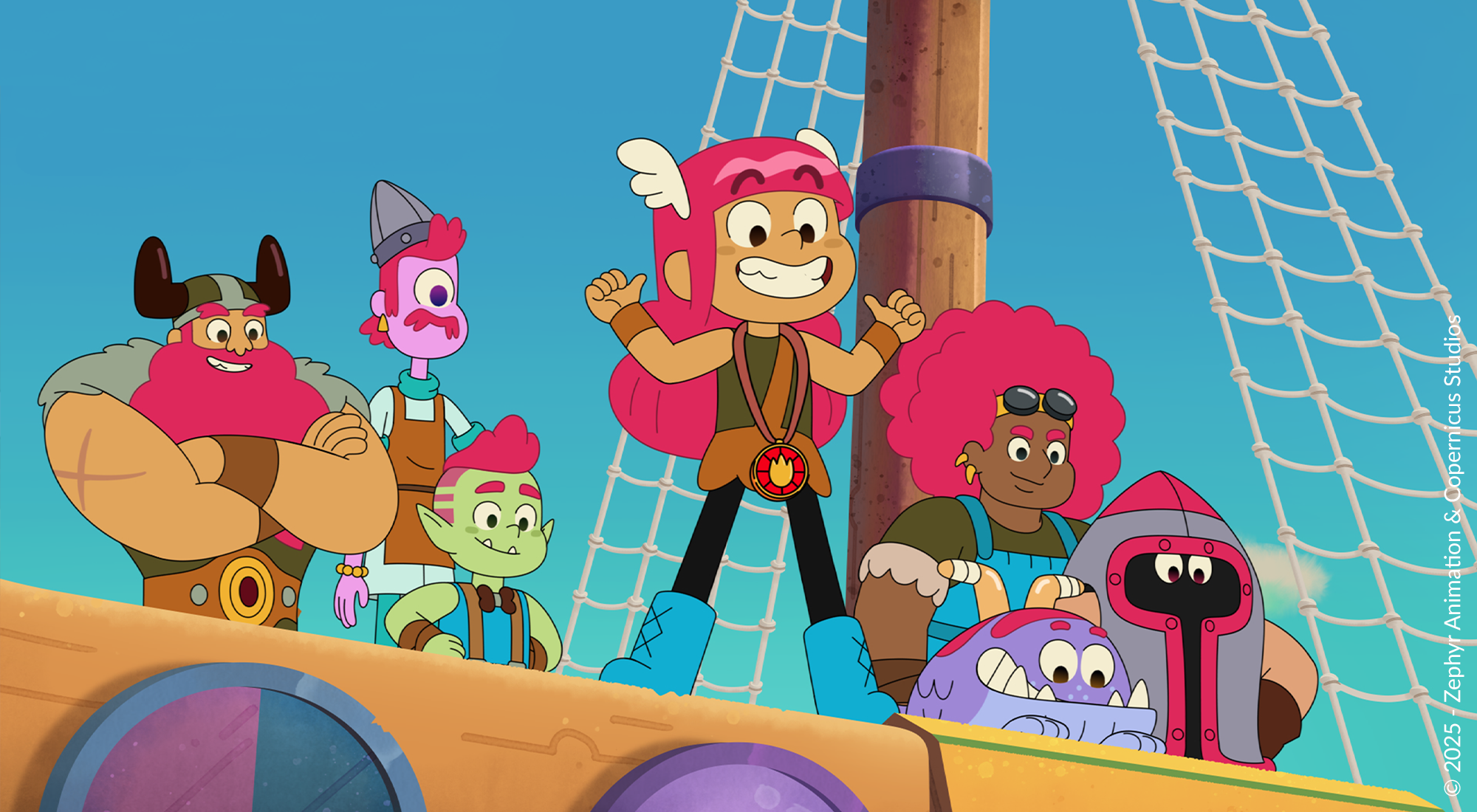Lana is a super feisty, forward-thinking, and passionate 12-year-old girl, and the heir to her father’s adventuring ship, the Mighty Windbreaker. Along with her Viking dad and his diverse crew of rogues (a dwarf, an orc, a barbarian, and a cyclops), she sails across the Ten Realms, dreaming of becoming one of the greatest adventurers of all time. But first, she must overcome some challenging obstacles: impulsivity, stubbornness, extreme curiosity, disdain for rules, and love of pancakes. All the best things about her!