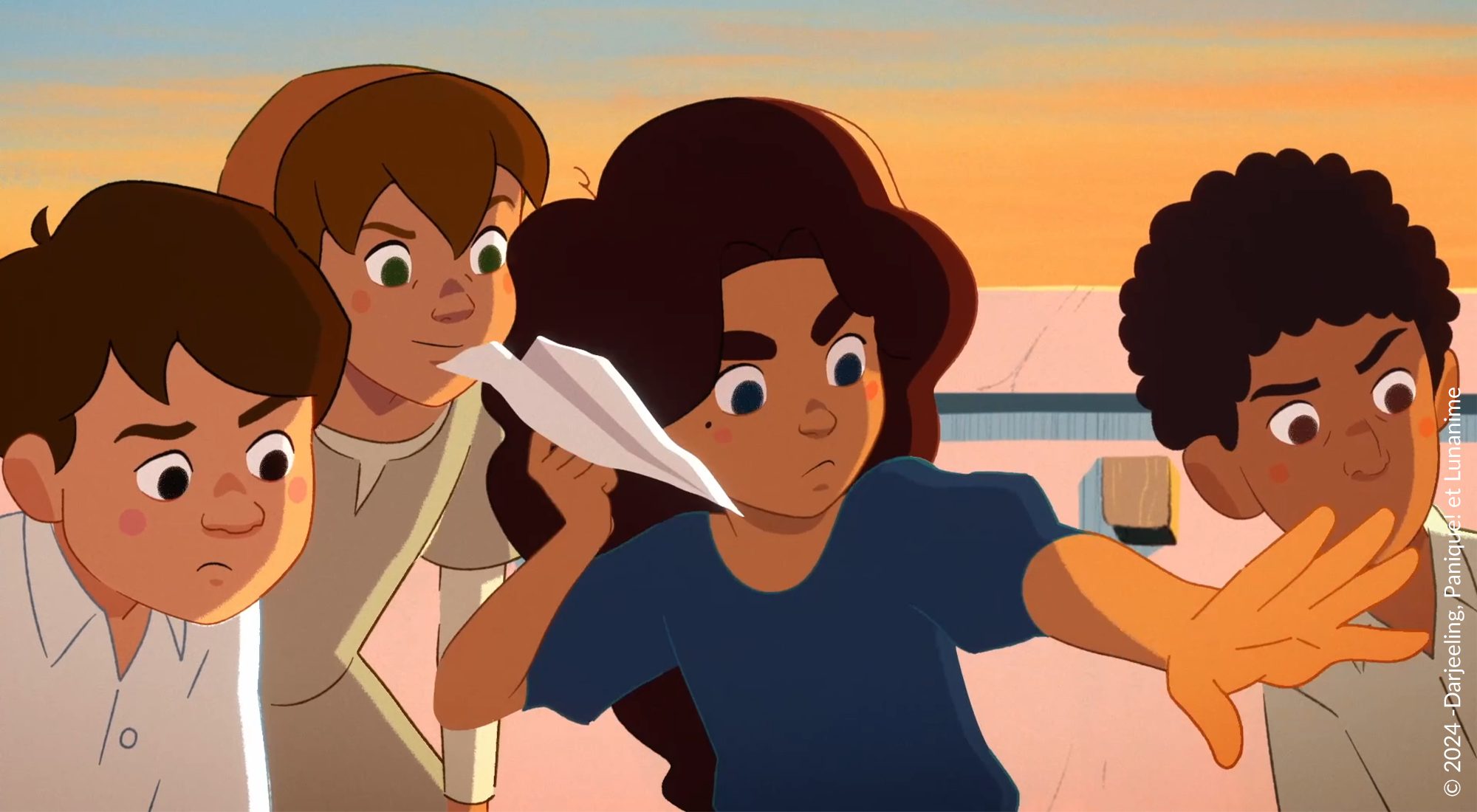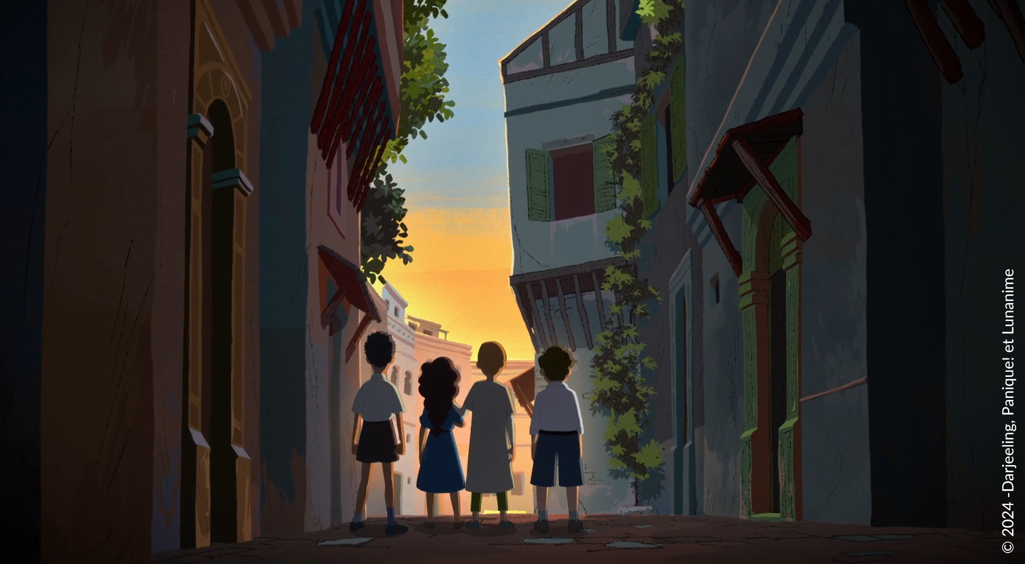 Algiers, 1955. War has not yet reached the gates of the city. Lyes, Ahmed, Philippe, and Khadidja are between 10 and 12 years old. Malek, Khadidja’s older brother and only family, is arrested after an altercation with policemen at the market. Lyes, a resourceful street child, witnesses the scene and takes the little girl under his wing. From their shack on the rooftops of the Casbah, the children will do everything they can to help Khadidja face this ordeal and, while roaming the city, decipher a mysterious black notebook found among Malek’s belongings.